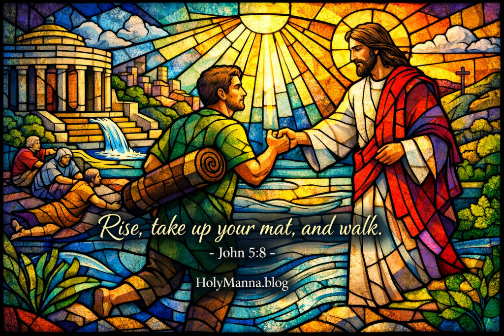 What sin, habit, fear, or wound is the Lord addressing right now with the words “Rise, take up your mat, and walk”?