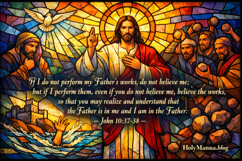 This Gospel stands at the center of Catholic faith because it reveals who Jesus truly is. He is not merely a moral teacher, a miracle worker, or a misunderstood prophet. He is the Son of God in the full and unique sense. That is why the accusation of blasphemy appears. The crowd understands that Jesus is speaking beyond the categories of ordinary human mission. The Church has always read this passage as a witness to Christ’s divine identity.