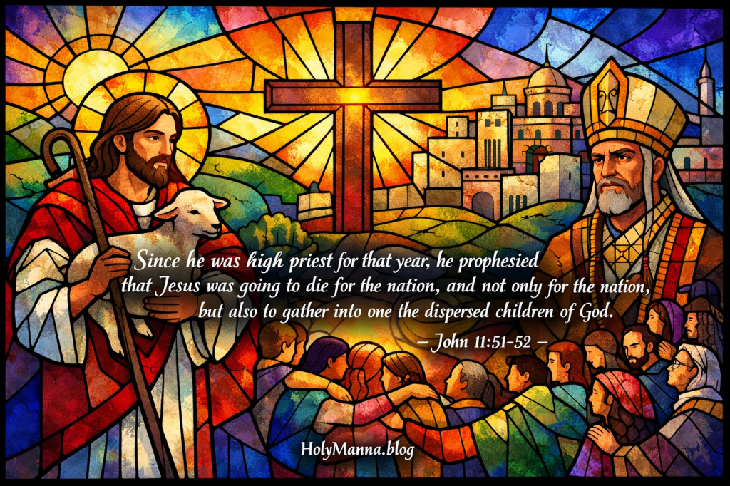 The Catechism speaks clearly about the gathering accomplished by Christ. In CCC 781, it says: “At all times and in every race, anyone who fears God and does what is right has been acceptable to him. He has willed, however, to make men holy and save them, not merely as individuals, without any mutual bond, but by making them into a single people.” That is the heart of verse 52. Jesus dies to gather into one the dispersed children of God. Salvation is personal, but it is never isolated. Christ creates communion.