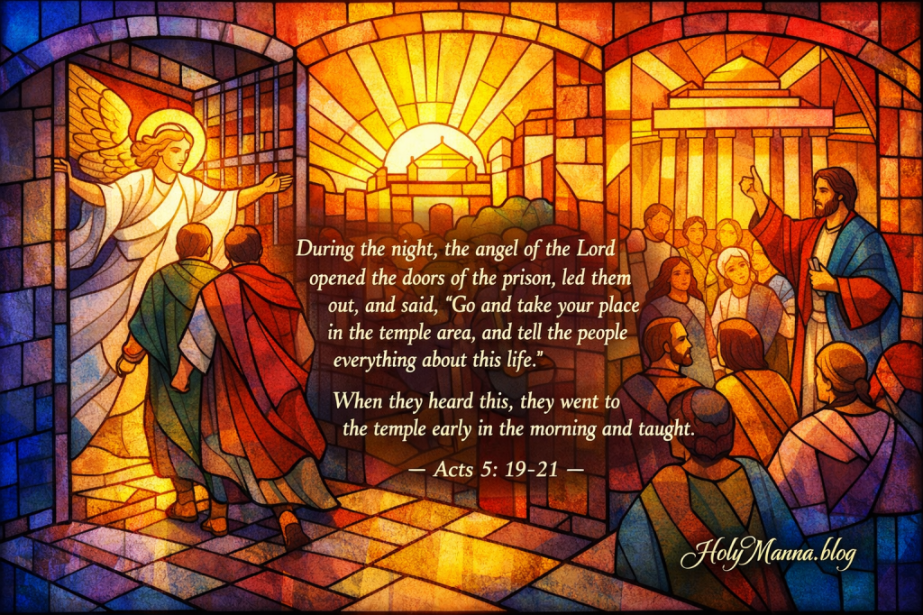 The beauty of the reading is that it does not end in despair or even in conflict. It ends with the apostles still standing, still speaking, still obeying. That is the real victory in the passage. The miracle is not just that the doors opened. The greater miracle is that their hearts remained open too. That is the grace worth asking for today. Lord, open what fear has closed, strengthen what suffering has weakened, and make this life in Christ too bright to hide.