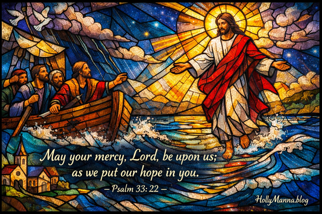 This verse carries a beautiful tenderness. The Lord’s eye is upon those who fear Him. In biblical language, fear of the Lord does not mean cowering terror. It means reverence, awe, filial humility, and the recognition that God is God and man is not. Those who fear Him are the same ones who count on His mercy. That pairing is deeply Catholic. Holy fear does not drive the soul away from God. It draws the soul toward Him in trust. This verse also speaks directly to the Gospel scene. The disciples think they are alone on dark water, but they are not beyond the Lord’s sight. The Lord watches over His people before they even realize He is near. Many believers need that reminder. Heaven is not distracted. God sees.