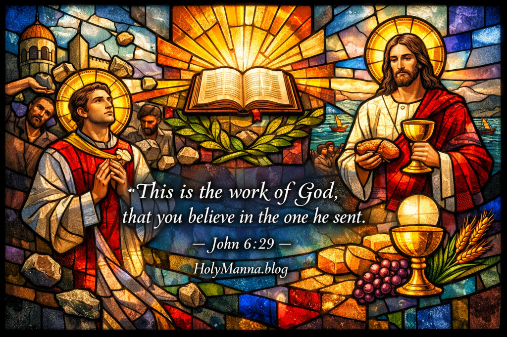 This Gospel fits perfectly into today’s theme. Stephen in the first reading stands firm because his heart is anchored in what lasts. The psalmist delights in the law of the Lord because he has learned where true counsel is found. Now Jesus confronts a crowd still living at the level of appetite and earthly satisfaction. He does not reject their hunger. He purifies it. He calls them higher. He invites them beyond passing bread, beyond temporary relief, beyond material expectation, into the work that matters most: faith in the One whom the Father has sent. This is where the Church begins to lead the faithful toward the mystery of the Eucharist, where Christ does not merely give bread, but gives Himself.