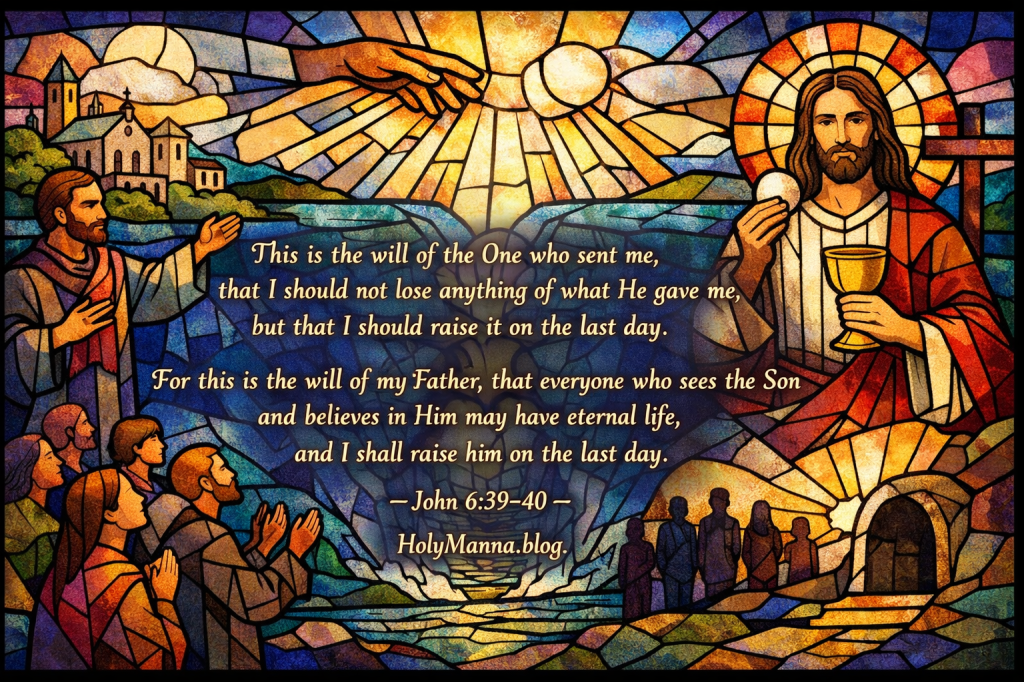 The repeated promise, “I shall raise him [on] the last day,” gives the passage its unmistakable horizon. The Bread of Life discourse is not only about present consolation. It is about final destiny. The believer lives now with hope rooted in a future that Christ Himself guarantees. The soul that feeds on Him by faith and, in the fullness of the discourse, by the Eucharistic mystery, is being prepared for everlasting communion with God.