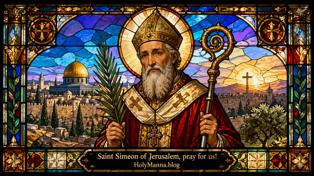 Saint Simeon of Jerusalem, sometimes called Symeon, stands near the very beginning of the Church’s earthly story. He is revered as the second bishop of Jerusalem after Saint James the Just, a kinsman of the Lord, a faithful shepherd of the first Christians, and a martyr who endured to the end. He is not one of the saints most Catholics hear about often, but his place in Christian tradition is profound. He belonged to that holy generation that stood close to the Apostles, guarded the flock in a time of danger, and handed on the faith when the Church was still young and vulnerable.
